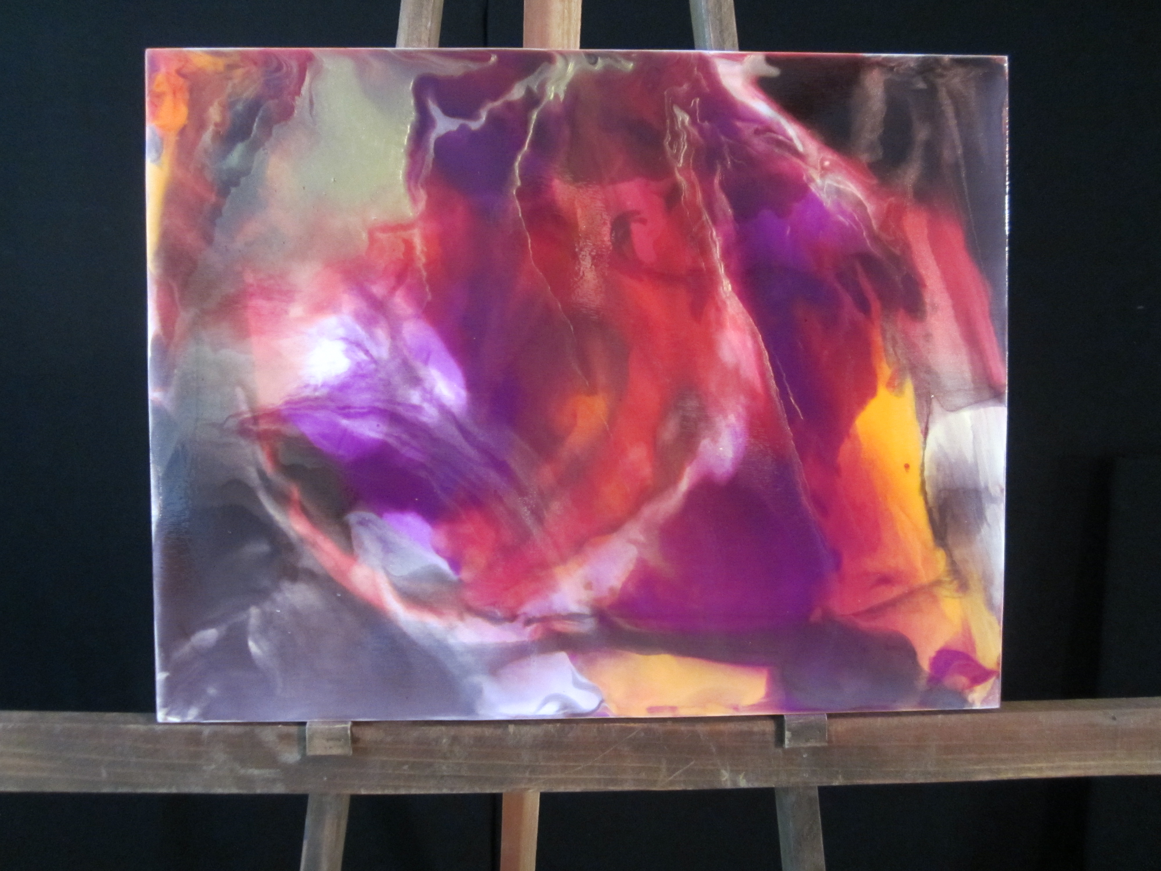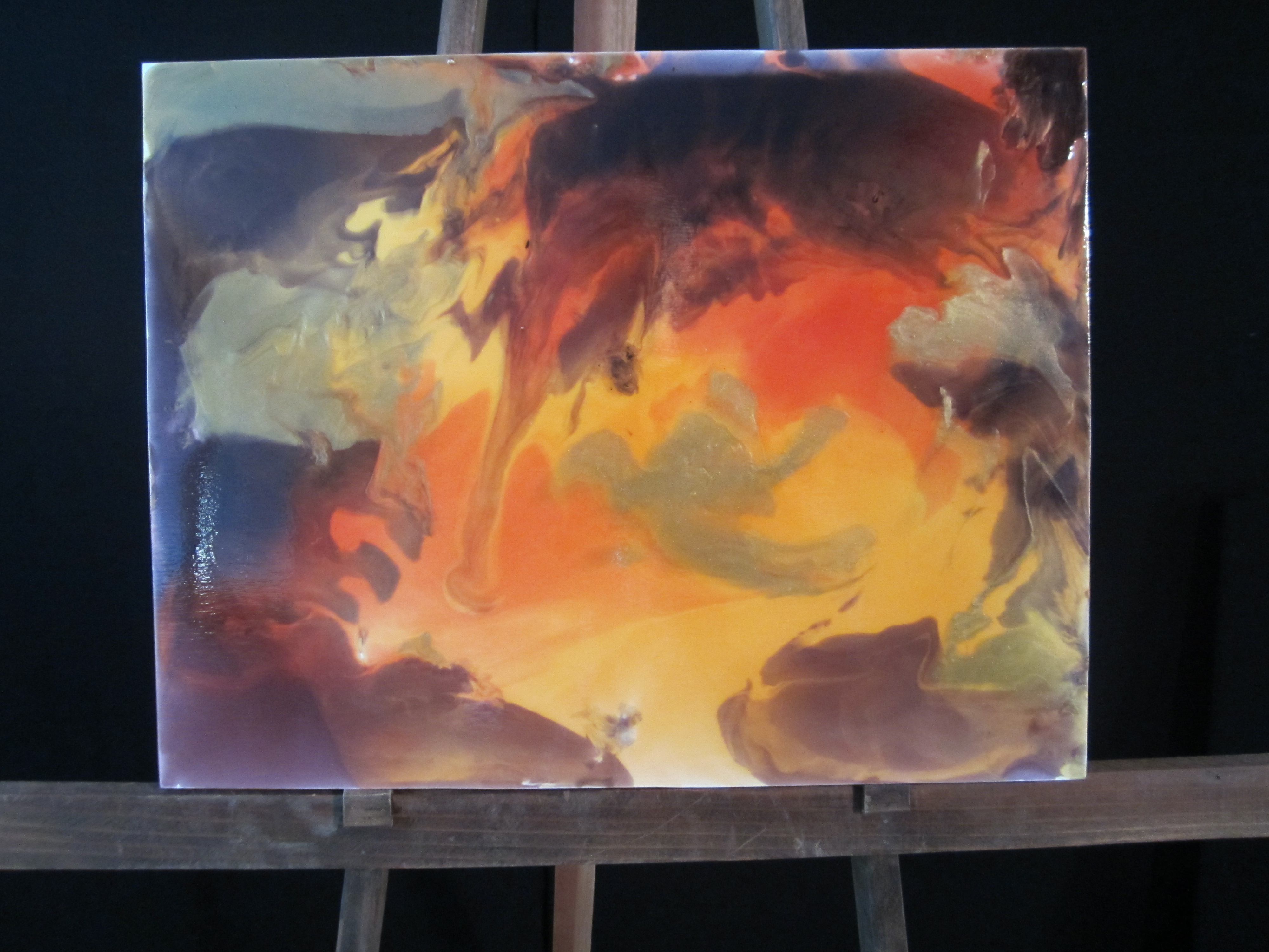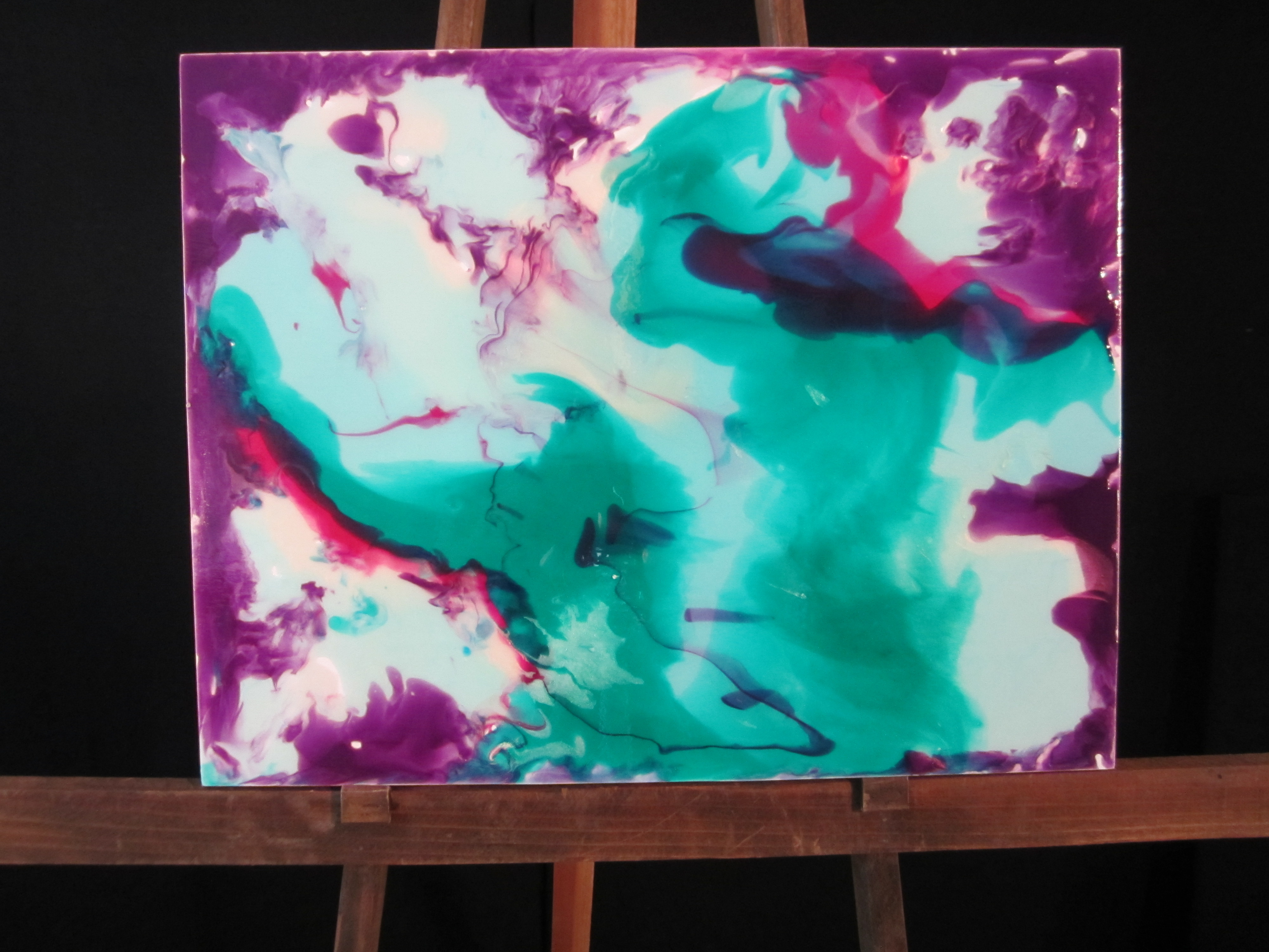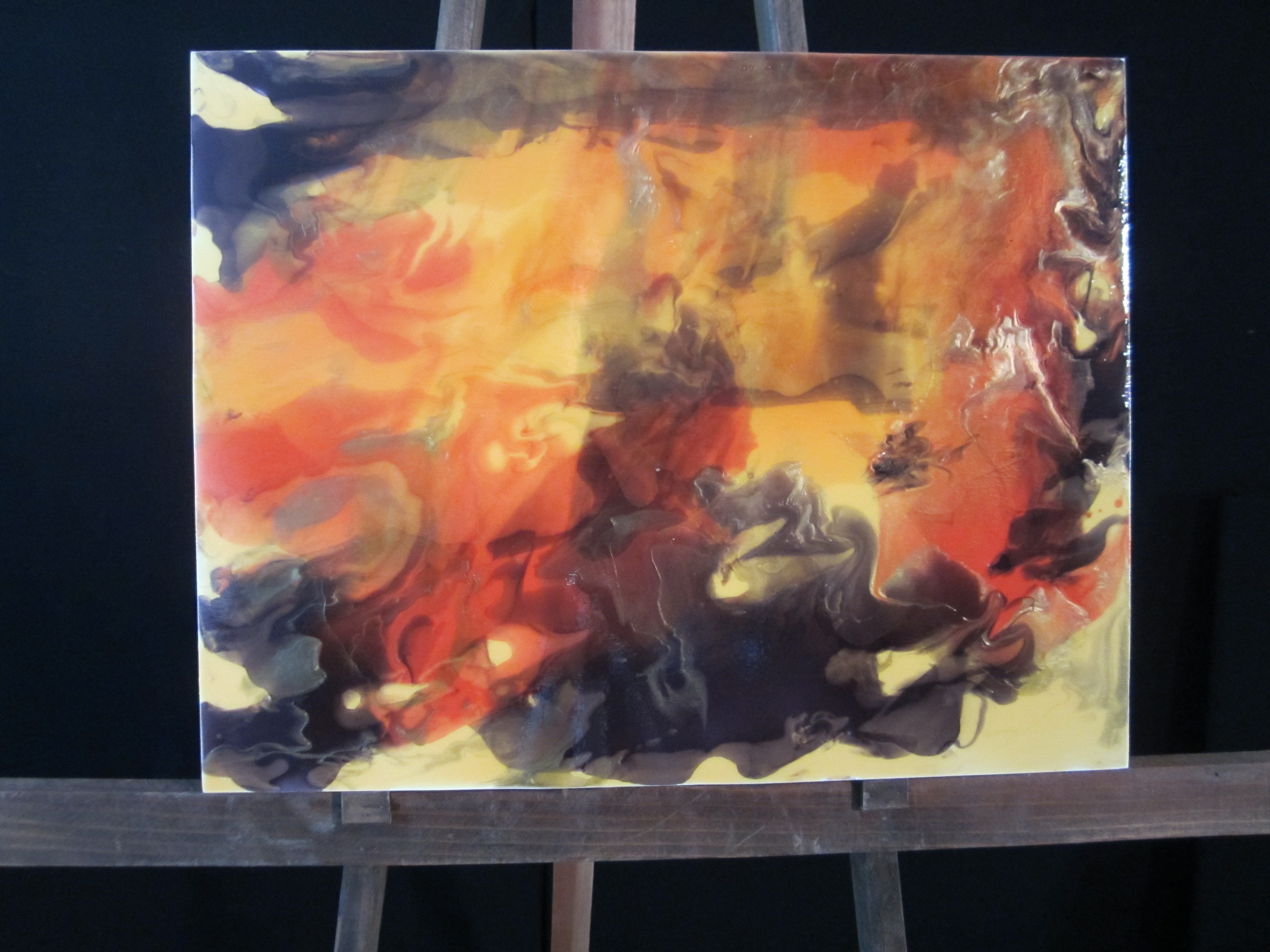 While drying, make sure to keep dust off it, especially if it’s exposed to heat. Exposure to heat opens acrylic molecules and it can tend to grab the dust and become one with it. This can happen with paper, or whatever pourous object is touching it. This medium is particularly susceptible to this problem.
